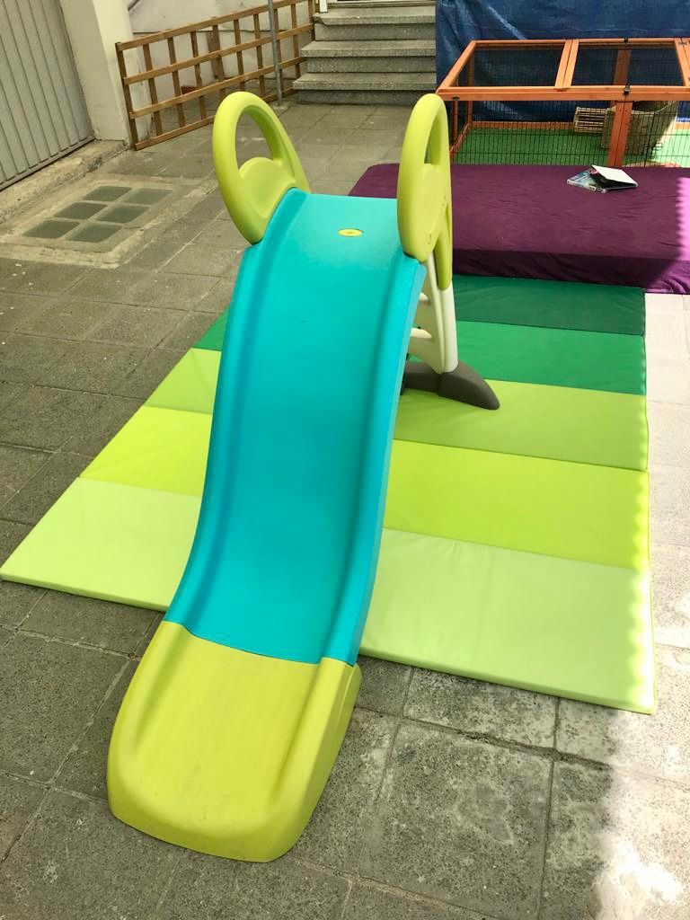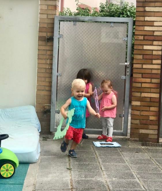 Der Hinterhof ermöglicht es uns, ohne große Vorbereitungen nach draußen zu gehen und zu spielen. Die Kinder haben eine Menge Spaß.